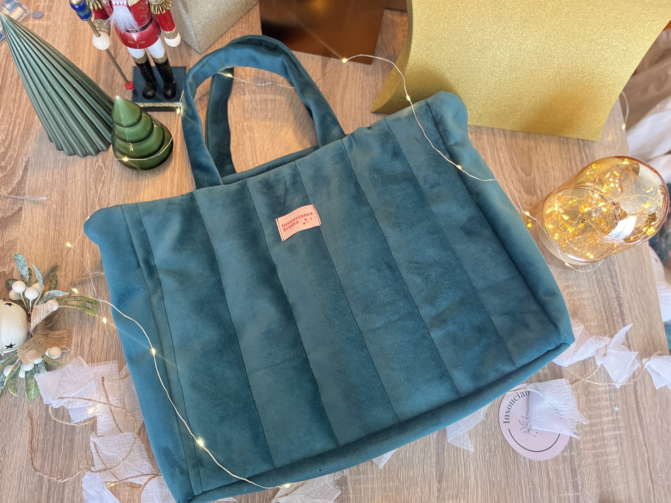 Grand sac cabas en velours fourre tout, polyvalent et très pratique. a transporter partout aux couleurs inédites de la collection de Noël